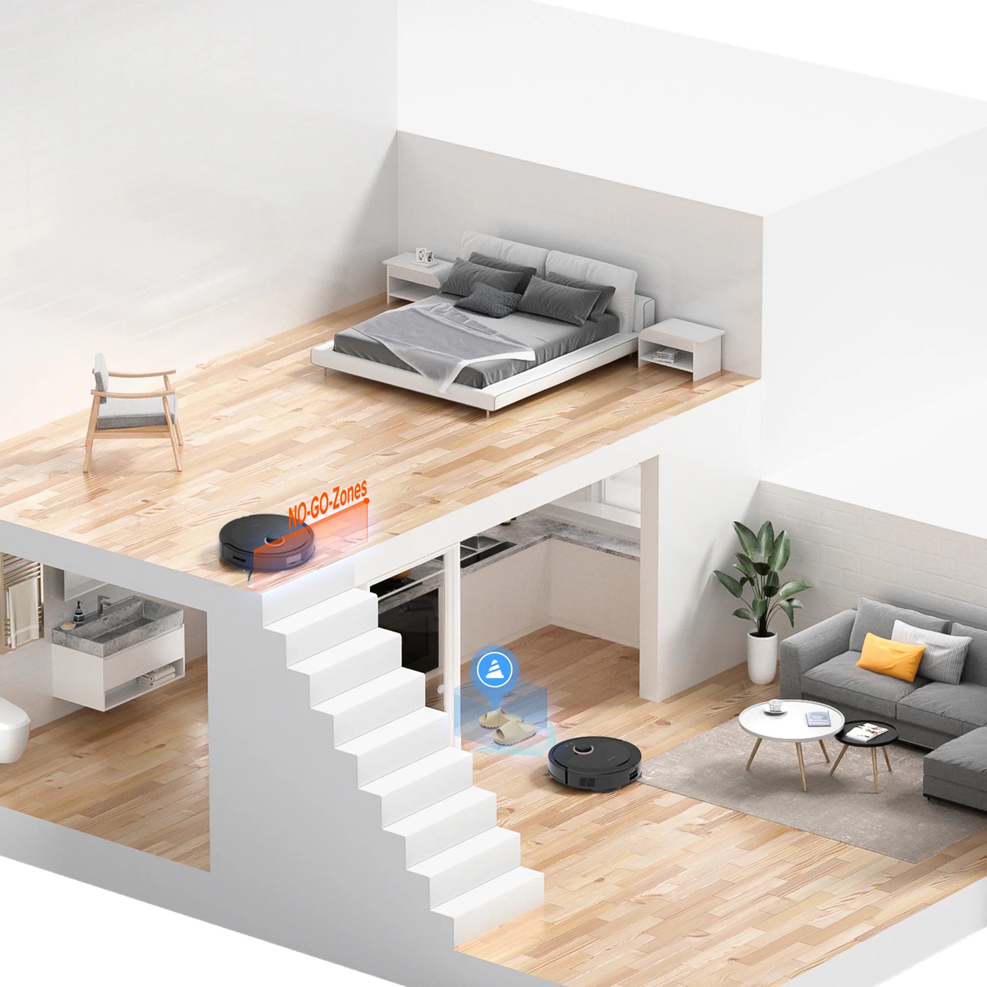Chỉ cần đặt xuống và robot tự động nhận diện các tầng khác nhau trong nhà. Tối đa lên đến 4 tầng.