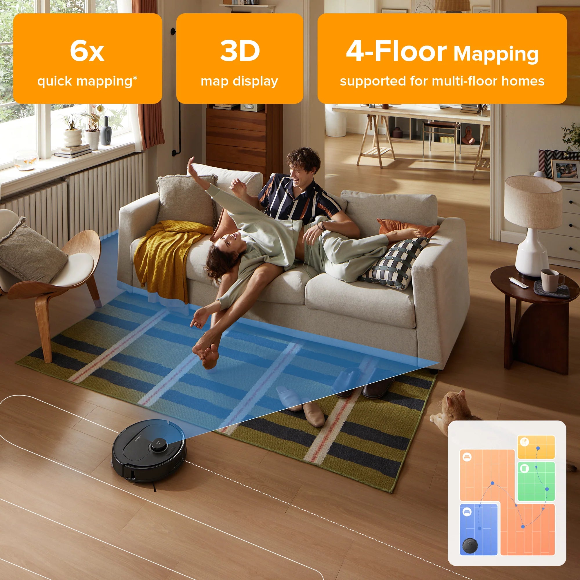 Hệ thống định vị PreciSense® LiDAR có khả năng quét và tạo ra các bản đồ chi tiết, từ đó tìm ra lộ trình tối ưu để làm sạch toàn bộ không gian trong ngôi nhà. Đảm bảo việc làm sạch toàn diện và tiết kiệm thời gian mà không bỏ sót bất kỳ khu vực nào.
