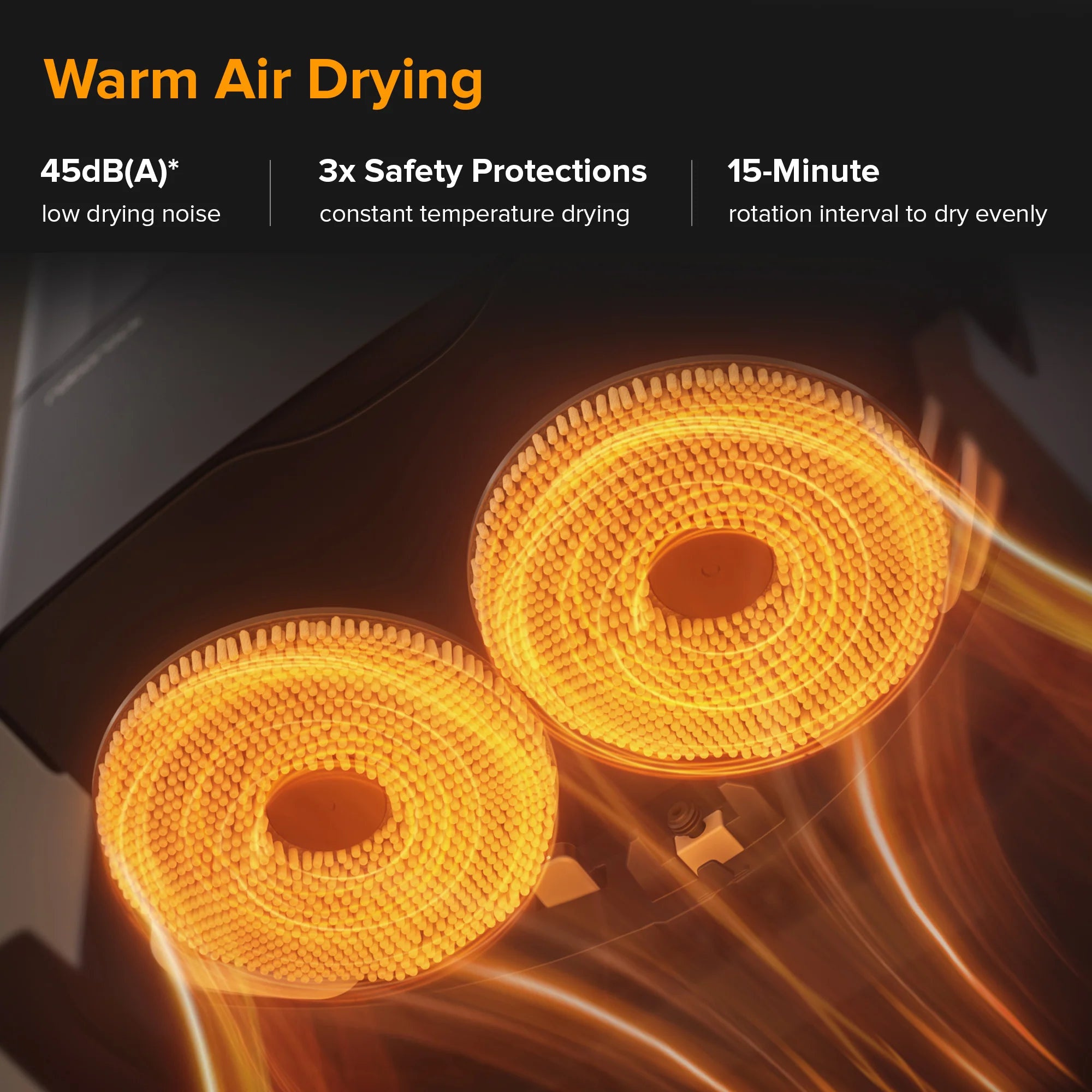 - Giẻ lau xoay kép với tốc độ quay 200 vòng/phút và 30 cấp độ tùy chỉnh
