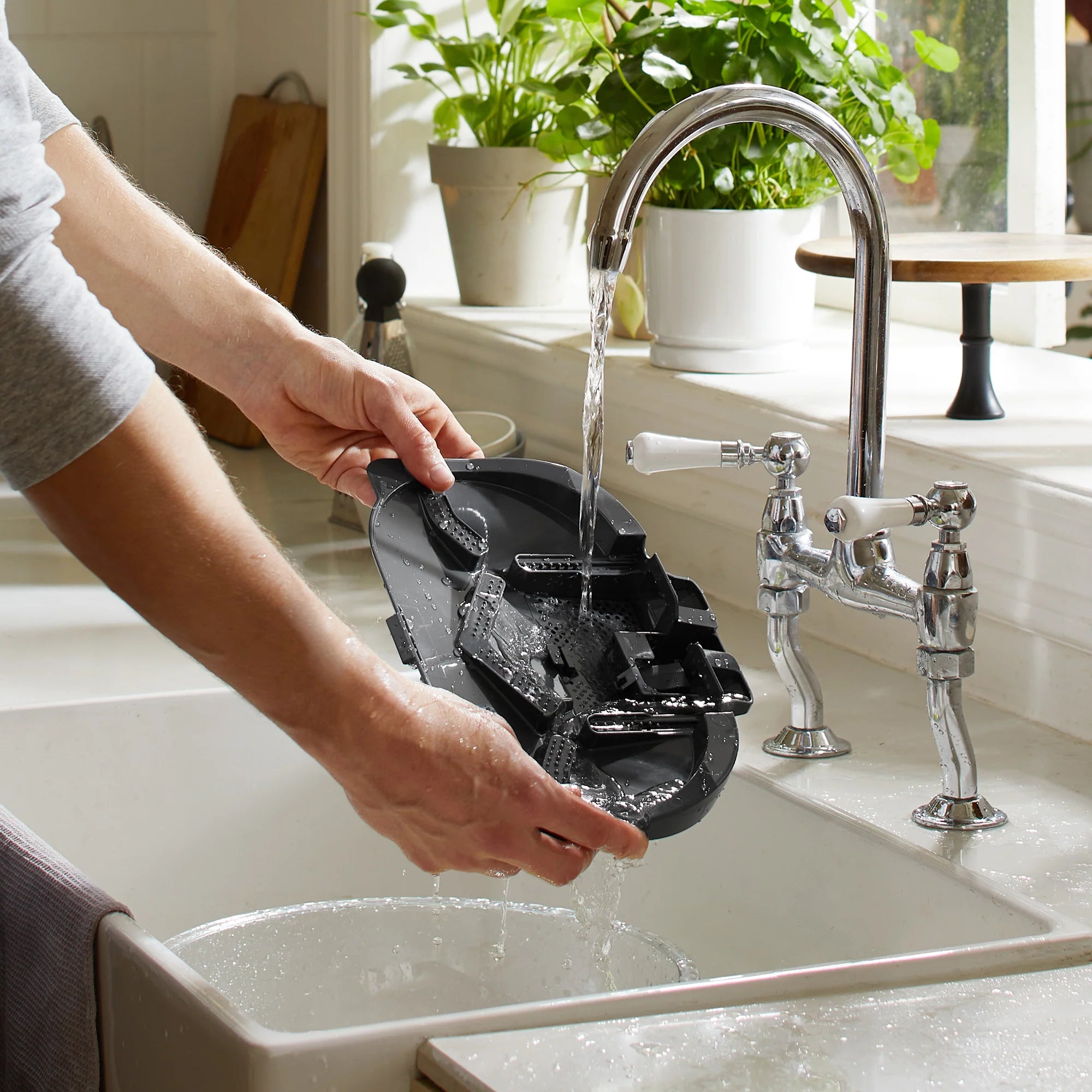 Toàn bộ đế dock có thể được tháo rời để làm sạch hoàn toàn, giảm thiểu tối đa tình trạng đóng cặn bùn đất và bụi theo thời gian. Miếng lọc lớn được nâng cấp giúp ngăn ngừa tắc nghẽn hiệu quả hơn.