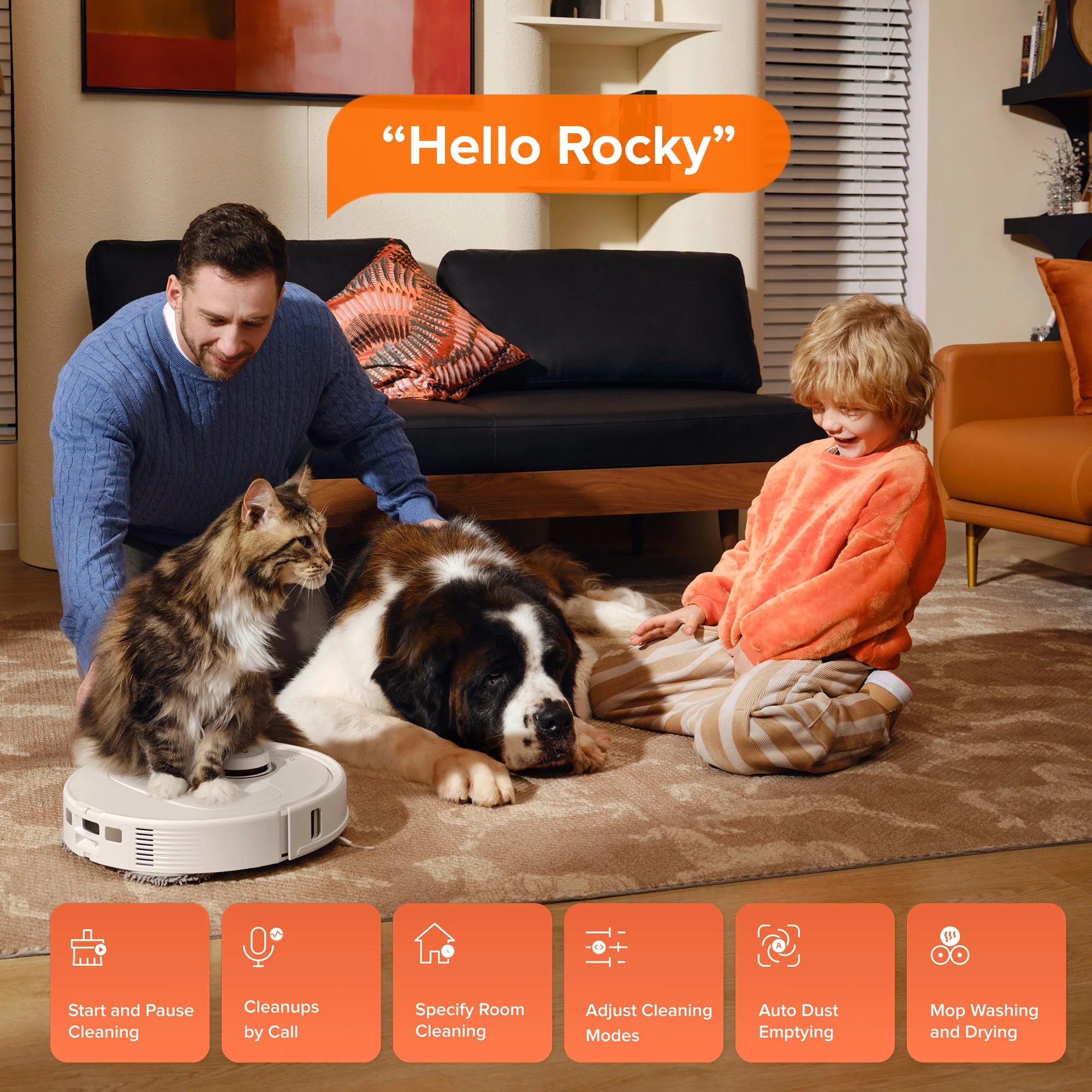 Bạn có thể gọi trợ lý giọng nói thông minh bằng cách nói “Hello Rocky” để bắt đầu dọn dẹp. Robot có thể làm theo lệnh của bạn ngay cả khi ngoại tuyến.