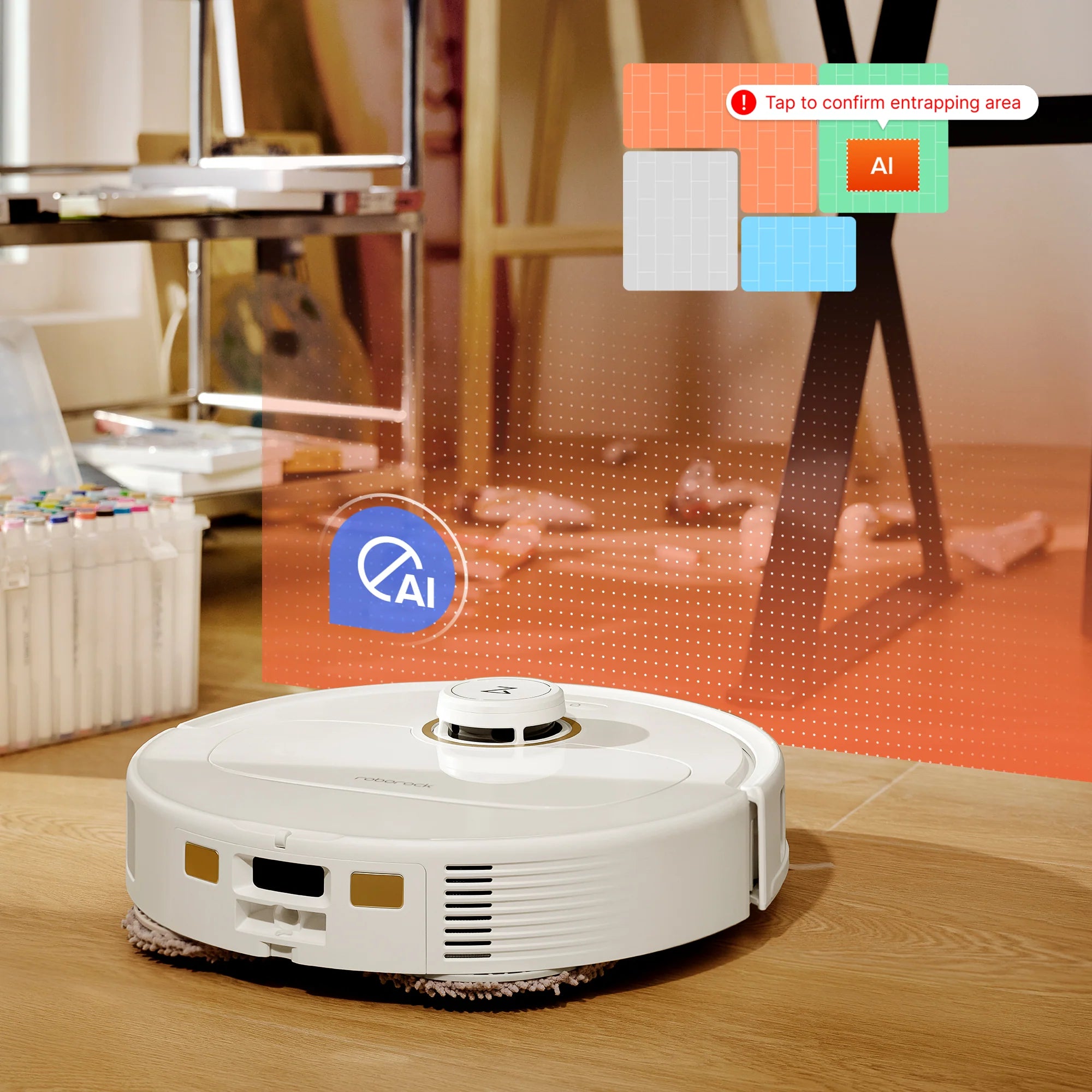 Tự động phát hiện những khu vực dễ mắc kẹt và đề xuất khu vực không nên đi. Vẽ tường ảo để chặn một số khu vực nhất định trong Ứng dụng Roborock.