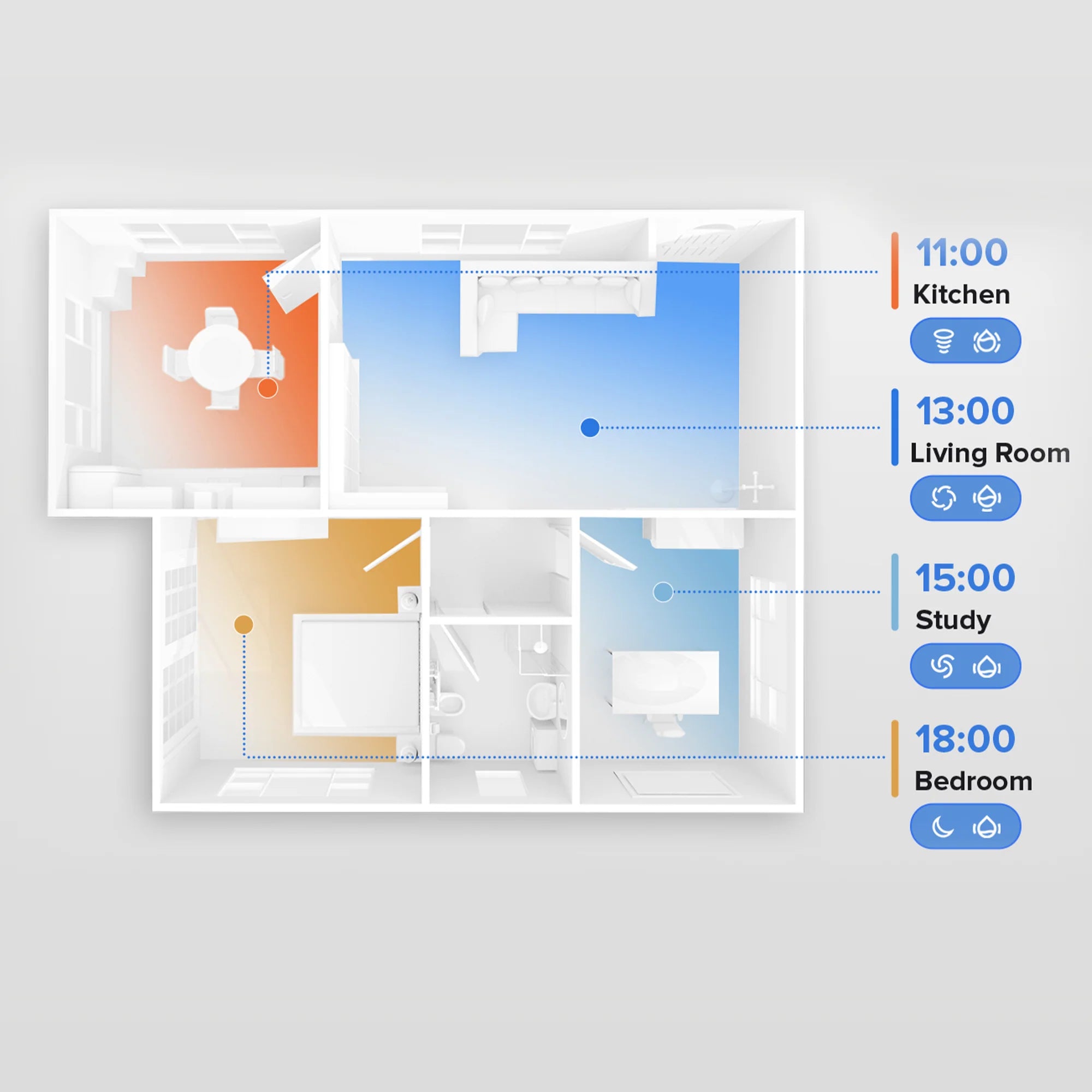 Tuỳ chỉnh thời gian robot dọn dẹp thông qua việc cài đặt lịch trình trên app và lựa chọn những khu vực cụ thể để dọn dẹp thường xuyên hoặc dọn dẹp theo nhu cầu.